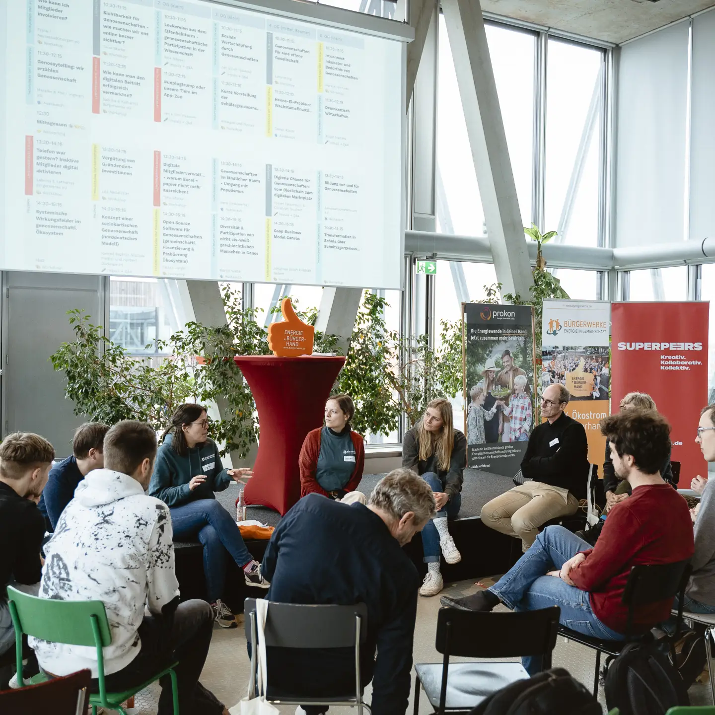Erlebe die Vielfalt von Genossenschaften in unserem branchen-, regions-, und verbandsübergreifenden Netzwerk mit über 1.000 Gründenden, Mitarbeitenden, Führungskräften, Vorständen und Aufsichtsräten von Genossenschaften.